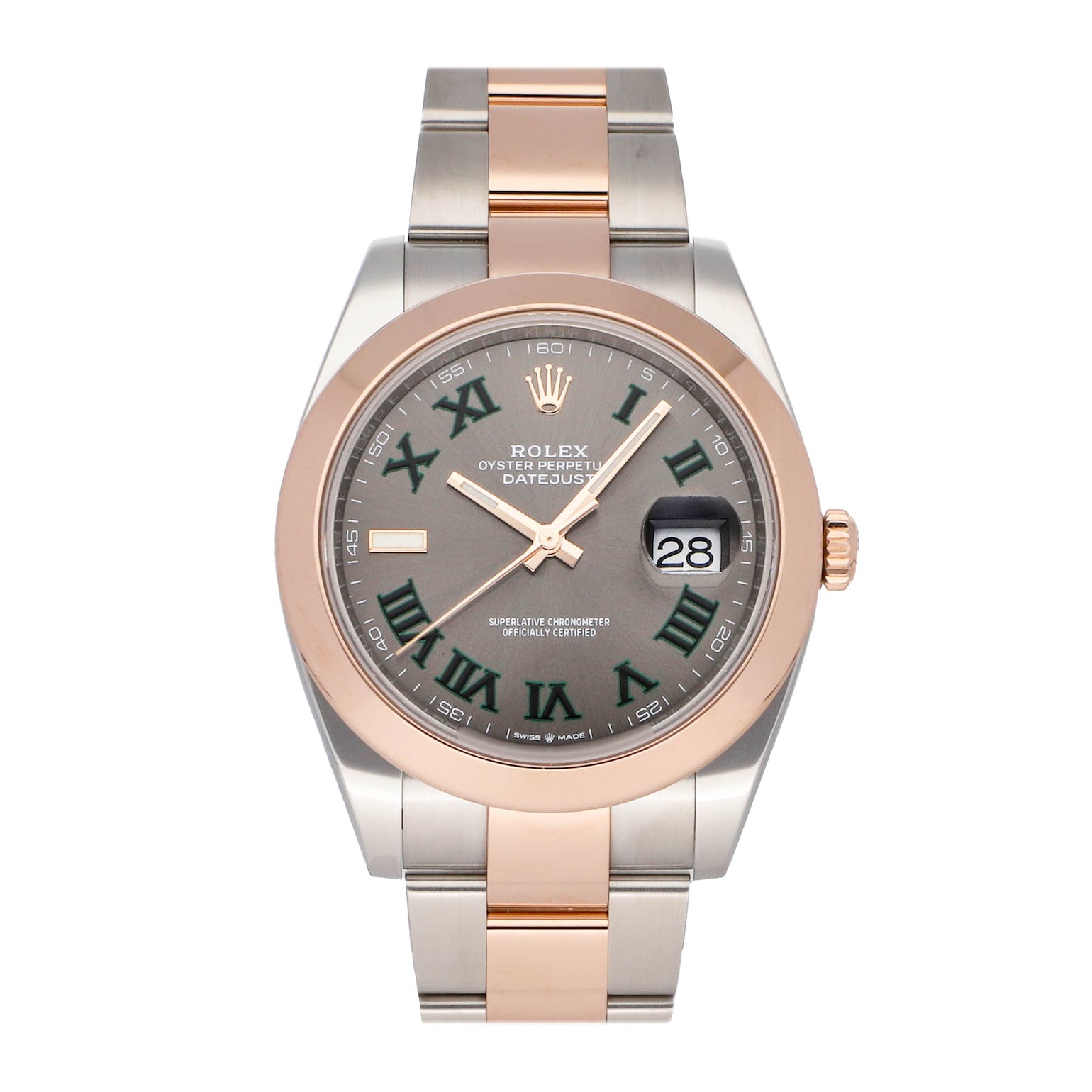 Introducing the Rolex Datejust 126301-0015, a distinguished watch that seamlessly combines timeless design with modern functionality. Manufactured in Switzerland between 2010 and 2023, this watch features a 41mm stainless steel case and a sophisticated gray dial with dot and index markers. The design is completed with Roman numerals, offering a classic touch to its contemporary aesthetic.