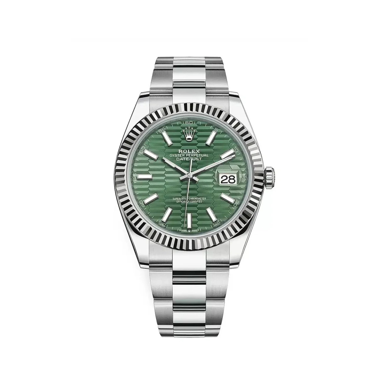 The 41mm stainless steel case is both durable and elegant, perfectly complemented by the fluted bezel that captures and reflects light, adding a touch of sophistication to the overall design. This classic element is instantly recognizable, making the Datejust 126334 a timeless choice for any occasion.